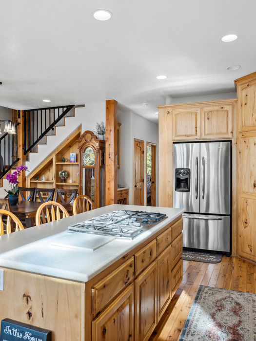 Outside, the expansive lot provides unmatched mountain and valley views. The wrap-around deck is perfect for enjoying morning coffee, hosting barbecues, or relaxing in the jacuzzi.