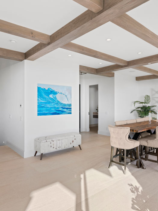 Enjoy breathtaking white water, ocean and island views from this most impressive North Laguna Beach soft contemporary. - Rarely does a newer construction home (built 2017) come available in N. Laguna Beach. - Before entering, you are welcomed by a vast pivoting glass door that offers an unbending view of the Pacific Ocean. Once inside this entertainers dream, you will find the main level with walls of glass and an open concept floor plan replete with panoramic water views from every room. The chef’s kitchen is a sight to behold with Wolf stainless steel appliances, coffee maker, two dishwashers, and a Sub Zero refrigerator conveniently disguised in the design. The ocean is your backdrop as you venture down to level two and three of this stunning en suite 4 bedroom, 6 bath, approximate 5000 square foot home. - Level two boasts ocean views from bedroom two and the expansive master suite with a fireplace, luxury en suite bath and an oversized walk-in closet with second private laundry room. Level three houses two en suite bedrooms, a gym room or wine cellar, and a large family room with a terrace expanding the width of the home. Also included are three fireplaces, an elevator accessible on all three floors, two laundry rooms, a three car garage and approved plans for a future cantilevered jacuzzi spilling into a planned 66’ lap pool with glass bottom deck.